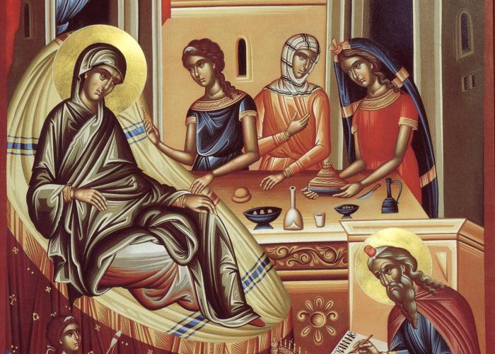 Mai înainte de a naşte Fecioara pe Hristos, a născut cea stearpă, în zilele sale pe Inaintemergătorul lui Hristos, ca acei ce vor vedea naşterea cea peste fire din cea îmbătrânită, să creadă naşterii celei mai presus de fire, care avea să fie din Fecioara cea nenuntită şi să zică în sine: „Puterea cea atotputernică a lui Dumnezeu, Care a dezlegat nerodirea bătrânei, aceea este puternică ca şi pe Fecioara cea neîntinată să o facă maică".